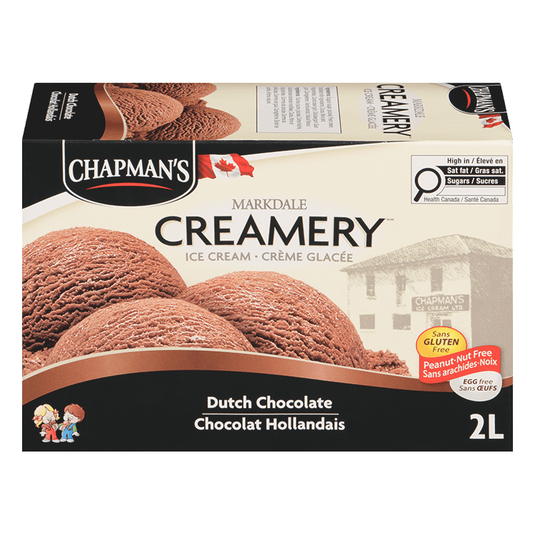 Markdale Creamery Chocolat Hollandais de Chapman’s est la crème glacée onctueuse et fondante préférée depuis longtemps par un grand nombre de personnes. À base de produits laitiers 100% canadiens, la crème glacée Chocolat Hollandais ne contient ni arachides/noix ni gluten, ni oeufs, mais regorge de saveur de cacao.
