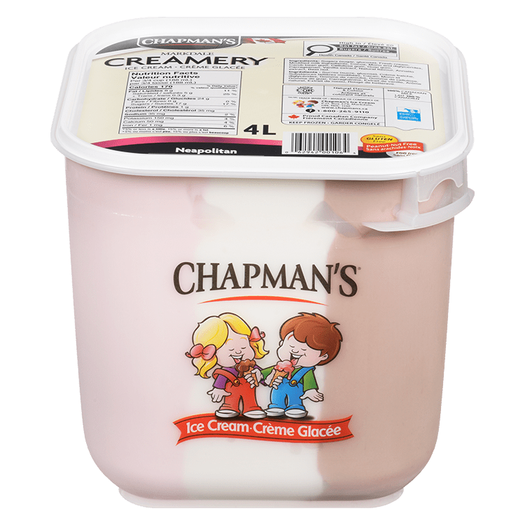 Hésitez-vous entre vos crèmes glacées favorites traditionnelles? La Napolitaine est exactement ce dont vous avez besoin. Vous pouvez soit avoir votre boule de vanille, de chocolat ou de fraise séparément, soit les trois saveurs en une seule boule. Cette crème glacée à base de lait 100% canadien compte parmi nos trois meilleures ventes. Sans arachides/noix sans gluten et sans oeufs.