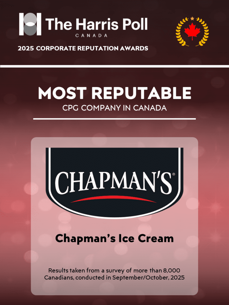 Chapman’s sets itself apart by earning the distinction of Canada’s Most Trusted Brand, reflecting the strong confidence Canadians have in the company. It also takes first place as Canada’s #1 CPG (Consumer Packaged Goods) brand.